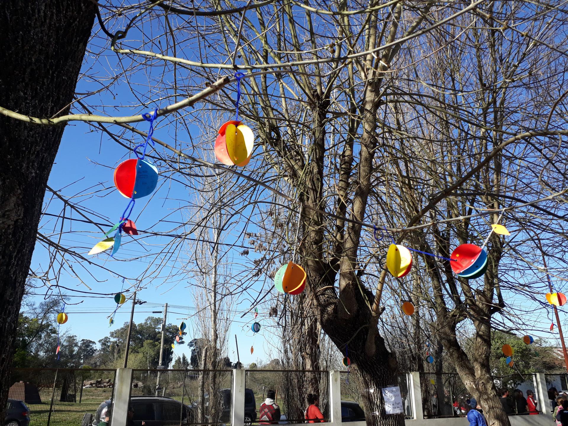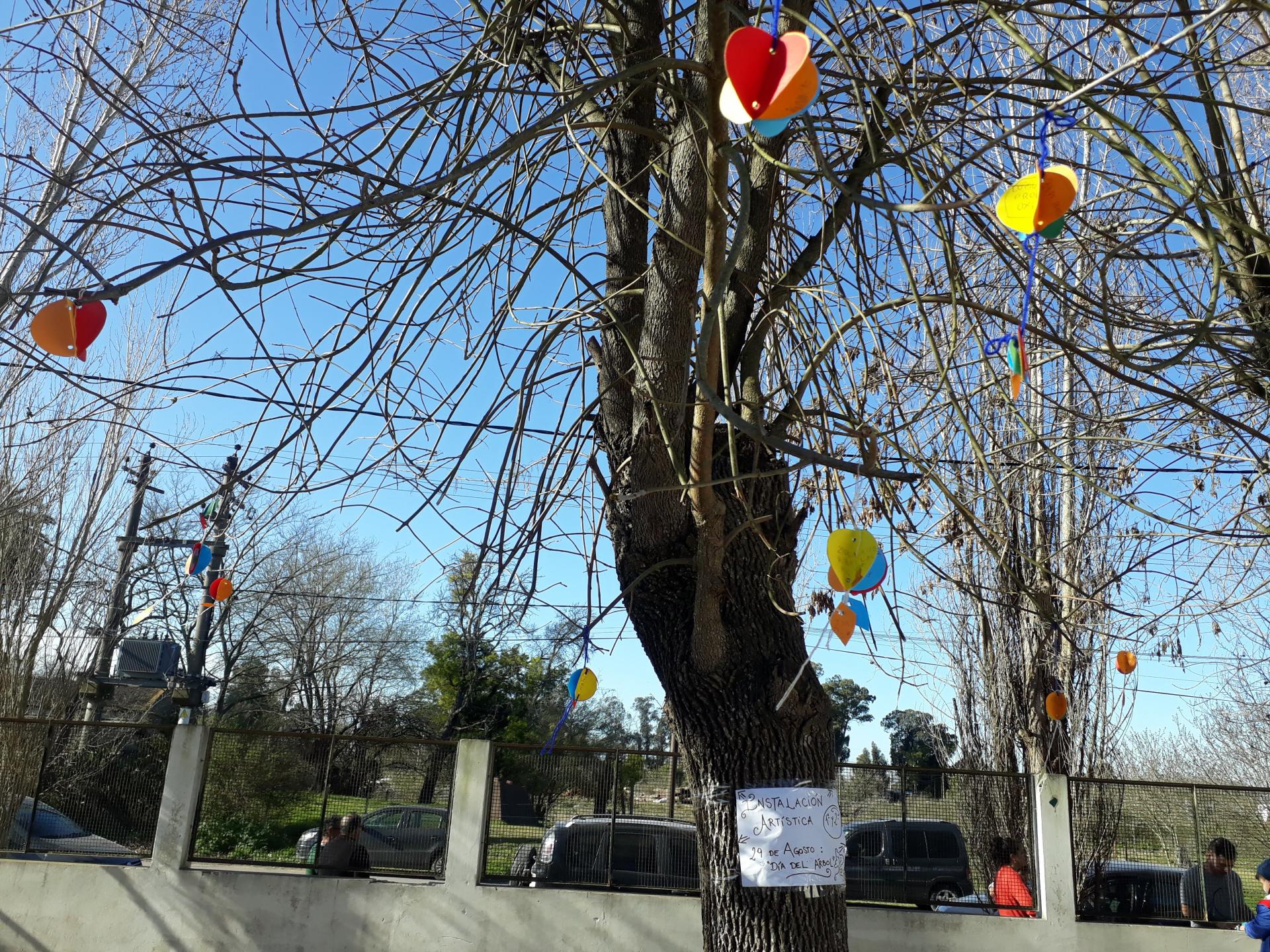 Los chicos y las chicas de primero y segundo año hicieron con la seño Noelia (de Plástica) una intervención artística para celebrar el día del árbol.